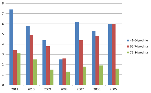 | XVII. Poremećaji živčanog sustava | 461 (274) | 9,7 | 9,5 | 12,1 | 8,0 | 10,0 |